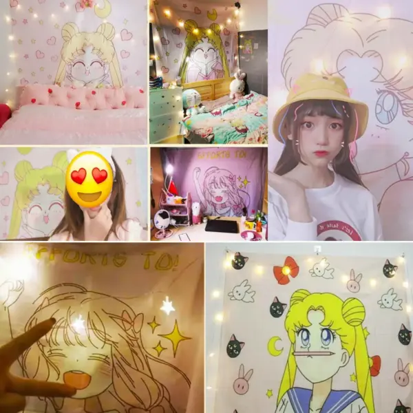 Anime Wandteppich Kawaii Rosa, Pink Tapestry für Mädchen Zimmer Deko Wandbehang, (NO LED) 250090002108